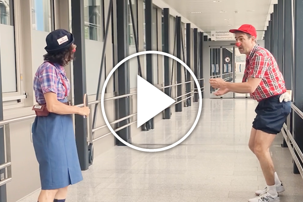 Clownin Hedwig und Clown Herrmann sorgen nicht nur bei kleinen Patient*innen für Freude, sondern versüßen auch dem Spitalspersonal den Tag!