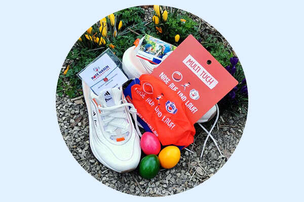 Ein Ostergeschenk für Sport-begeisterte, das gleichzeitig kranken Kindern Lachen schenkt. Enthält: ROTE NASEN-Armband, Multituch, Startplatz beim ROTE NASEN LAUF.