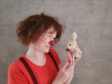 Manchmal hilft auch meine Handpuppe Hansi der Hase bei der ersten Kontaktaufnahme, speziell bei jüngeren Kindern. Bei einem kleineren Buben in Wals haben sich sein Kuscheltier und Hansi zunächst vorsichtig angenähert. Beim Besuch zwei Wochen später haben die beiden Kuscheltiere bereits gemeinsam Abenteuer erlebt und sind das Stiegengeländer runtergerutscht. Und wieder einen Besuch später ist der Bub direkt mit uns Clowns ins Spiel eingestiegen und Hansi durfte in der Tasche bleiben.