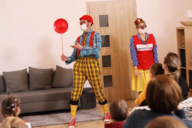Meine Clownkolleg*innen und ich besuchten eines der Aufnahmezentren in Polen, in denen derzeit hauptsächlich Kinder und ihre Mütter untergebracht werden. Unser Besuch dort war für alle sehr emotional. Wir konnten uns nicht vorstellen, was uns erwarten würde und in welchem Zustand (vor allem psychisch) die Kinder und ihre Mütter sein würden, die erst wenige Tage zuvor aus der Ukraine geflohen waren.
