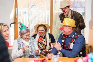 Als Flora und Fauna, ein paar Wochen später wiederkommen, brennt am Gang die weiße Kerze... Flora erfährt von der Stationsschwester, dass Wilfried verstorben ist. Dann fügt sie hinzu: „Tageshospiz wartet eine neue Patientin, die sich auf Rote Nasen-Besuch freut.“ Flora atmet kurz tief durch und als sie den Aufenthaltsraum betritt, singt Fauna „Ein bisschen Tratschen tut immer gut. Da wird es jedem wieder leicht zumut.“