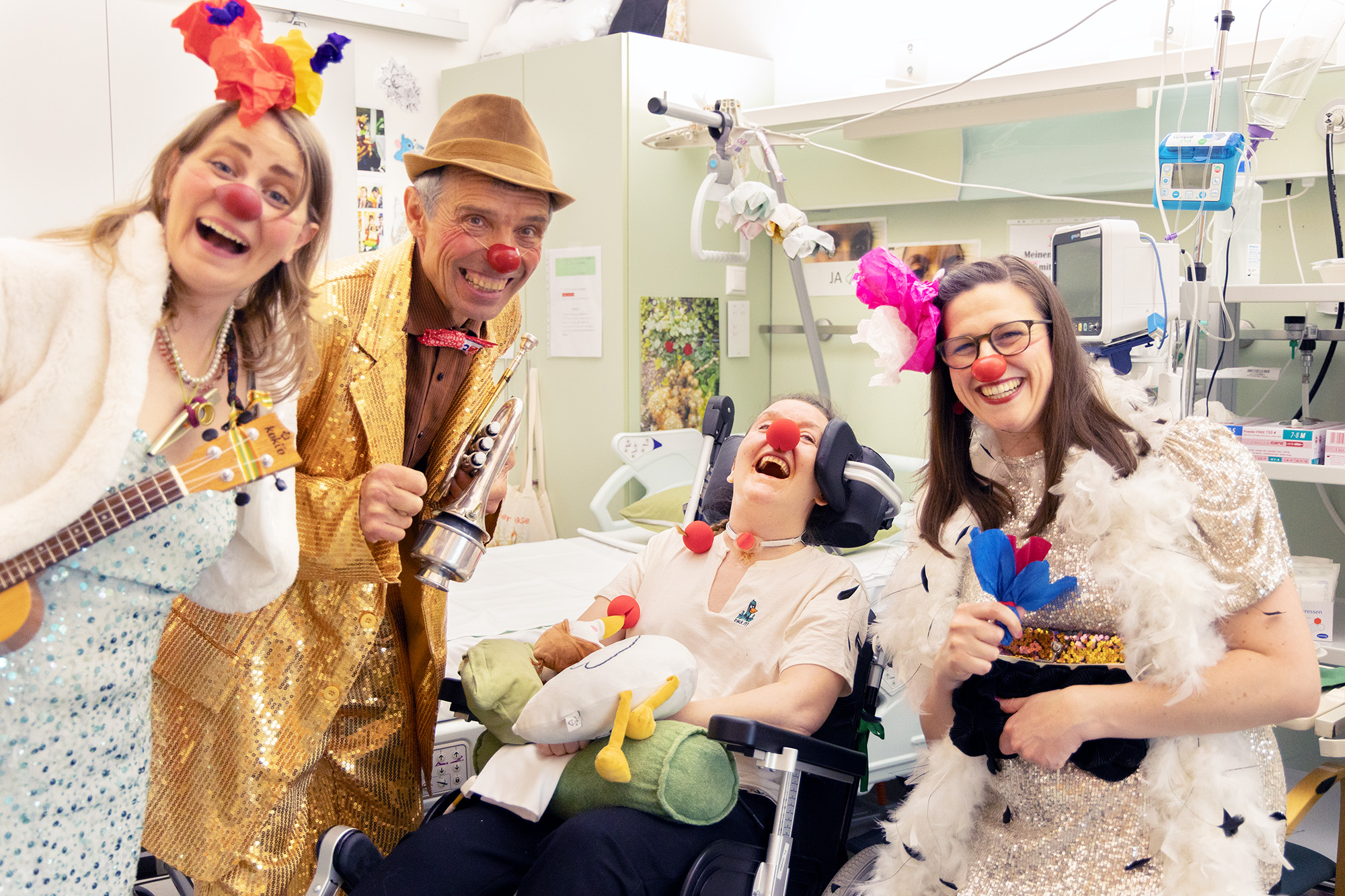 Auf dem Wachkoma-Department sind ROTE NASEN seit mittlerweile 10 Jahren gern gesehene Besucher bei Patient*innen, Angehörigen und Pflegepersonal.