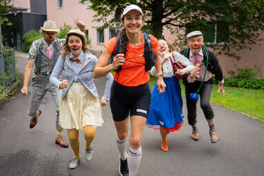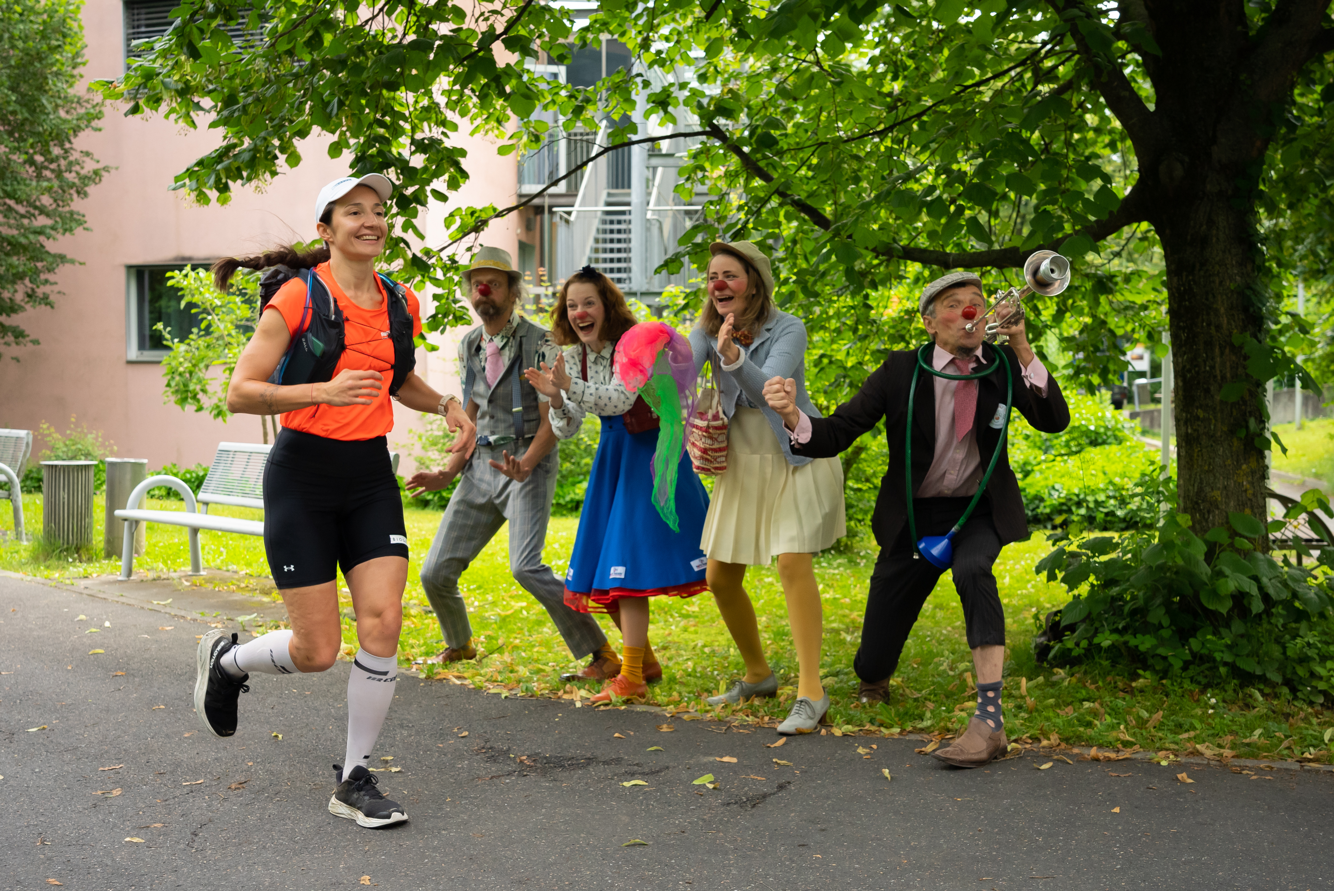 Bild 2: Vollen Einsatz zeigen die Clowns jeden Tag im Spital – und heute auch auf der Laufstrecke.