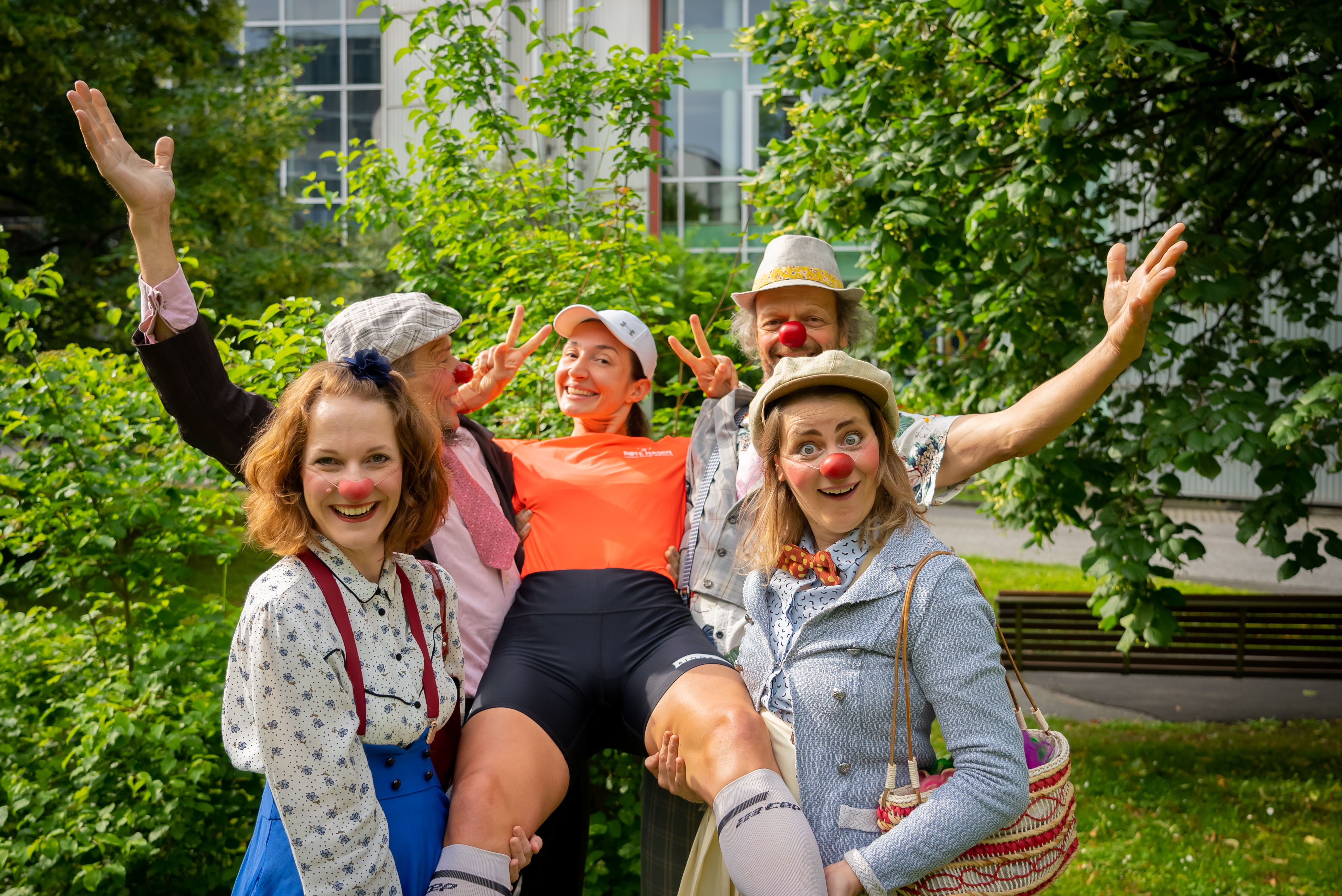Bild 3: Bevor es weiter Richtung Kärnten geht, tragen die Clowns Michaela noch auf Händen und bedanken sich bei ihr für ihre starke Leistung.