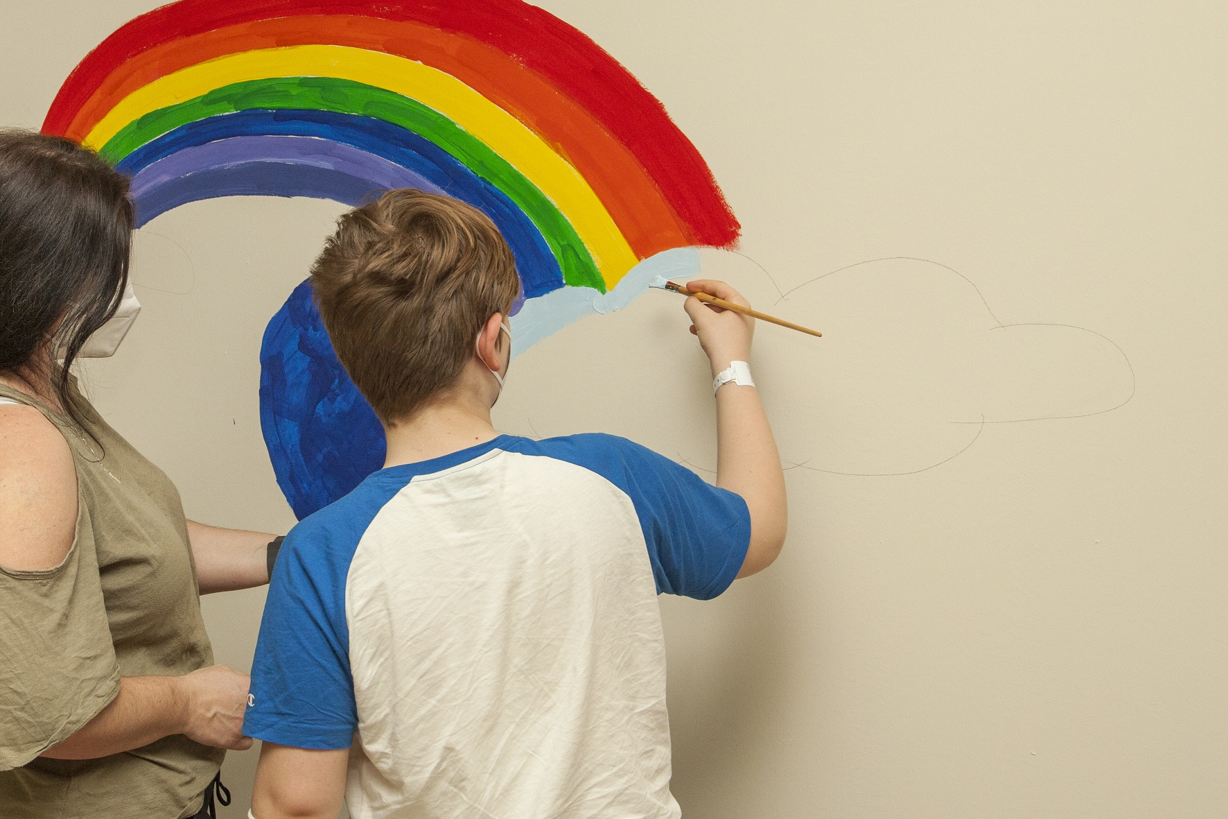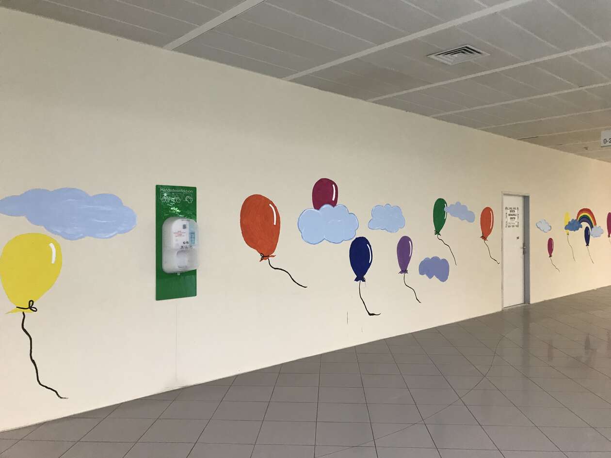 Einen ganz besonderer und farbenfroher Clowneinsatz fand Anfang April in der Klinik Donaustadt statt. Gemeinsam mit den Kindern und zwei Pädagoginnen der Station, gestalteten die ROTE NASEN Clowns Lotte und Otto den Haupteingang neu! Ausgestattet mit Acrylfarben und dem passenden Malzubehör, konnten die Kinder ihrer Kreativität freien Lauf lassen. Bunte Luftballons, ein knalliger Regenbogen und flauschige Wolken, zieren nun die Eingangswände der Klinik Donaustadt.