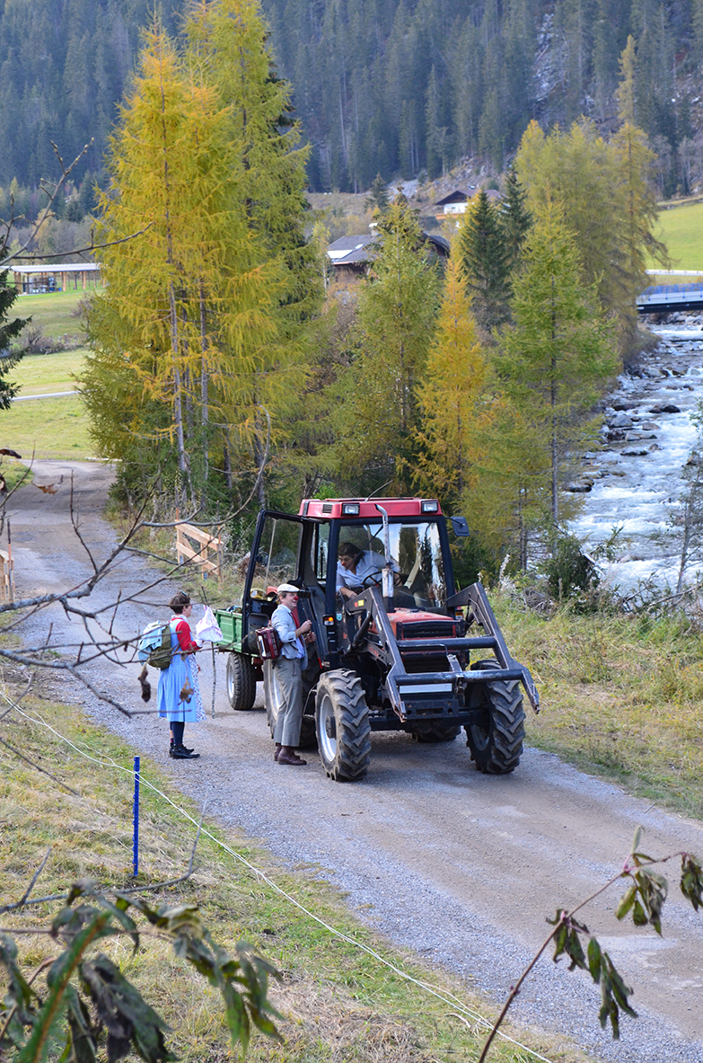 Von den genannten Familien durfte sie Traktor sowie Anhänger ausleihen und damit ihre verlorenen Clownkollegen einsammeln sowie transportieren. Durch ganz St. Jakob düste dieses Trio auf der Suche nach ihrem Clown-Auto. Nunmehr als ROTE NASEN Clownin Aloisia und regionale Programmleiterin für Kärnten und Osttirol im Einsatz, freute sich Nagele außerordentlich über das humorvolle Wiedersehen mit vielen bekannten Gesichtern.