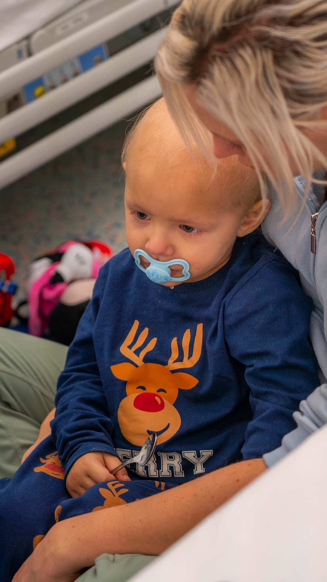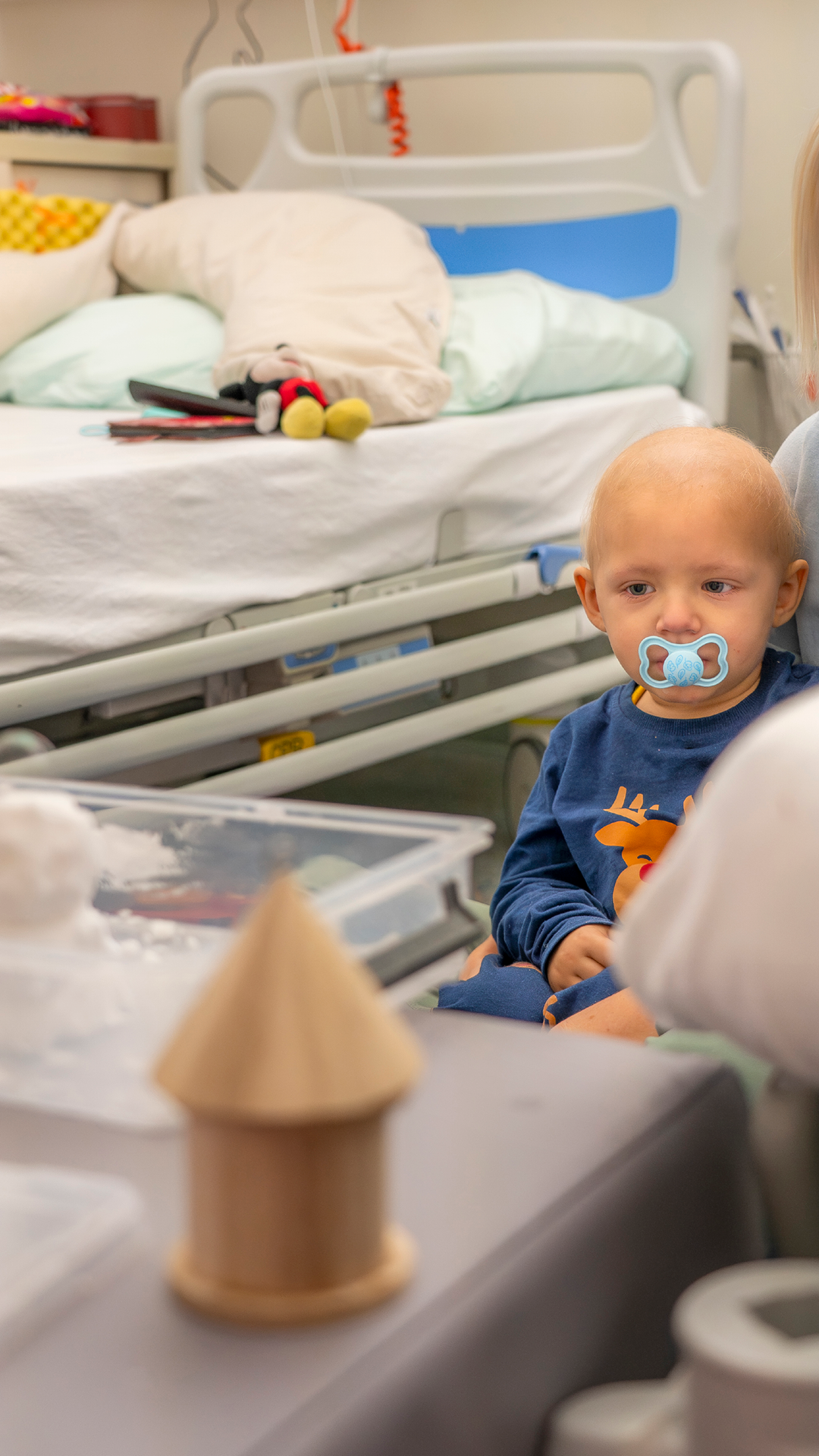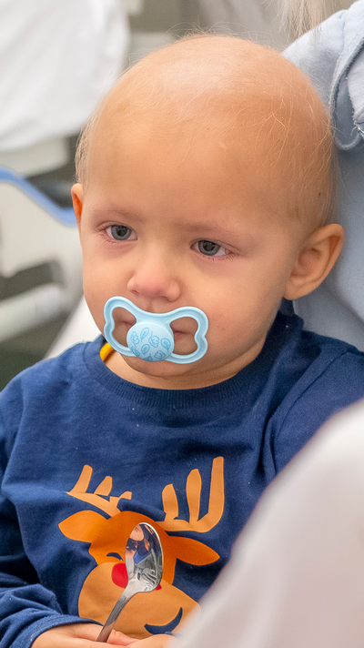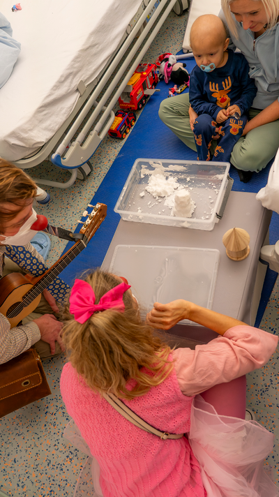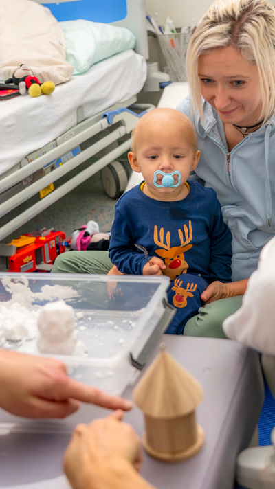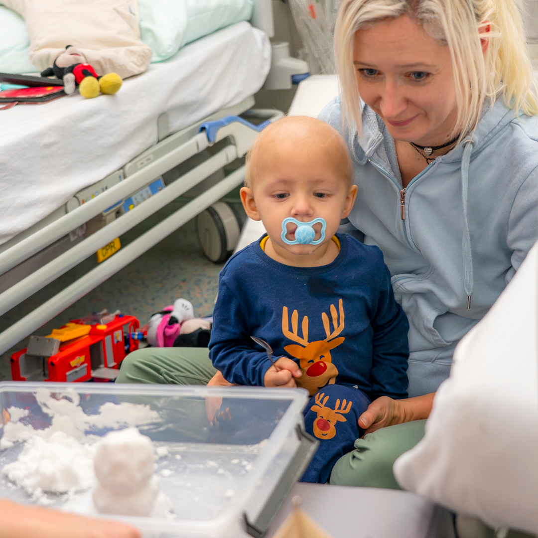 Heute ist der kleine Levi besonders müde, denn er hatte vor einigen Stunden eine Punktion in Narkose. Um seinen Blutkrebs heilen zu können, braucht der zweijährige Bub rasch eine Knochenmarkstransplantation. Seine Mama und er haben die ROTE NASEN Clowns in dieser langen Zeit schon oft erlebt. Die Clowns schenken ihnen beiden regelmäßig Kraft in einer Zeit, in der Levi besonders zerbrechlich scheint. So wie heute nach seinem Eingriff.