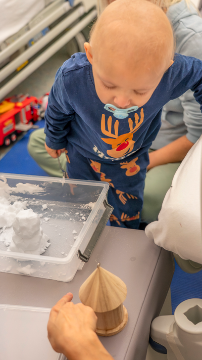 Levi beobachtet gebannt, wie die beiden Clowns auf magische Weise eine kleine rote Schaumstoffnase hervorzaubern. „Wo soll ich sie dem Schneemann denn aufsetzen?“, fragt Clownin Paula und hält dem Schneemann die rote Nase vors Gesicht. „Nein!“, sagt Levi bestimmt und zeigt auf ein kleines Vogelhaus aus Holz, das neben dem Schneemann steht.