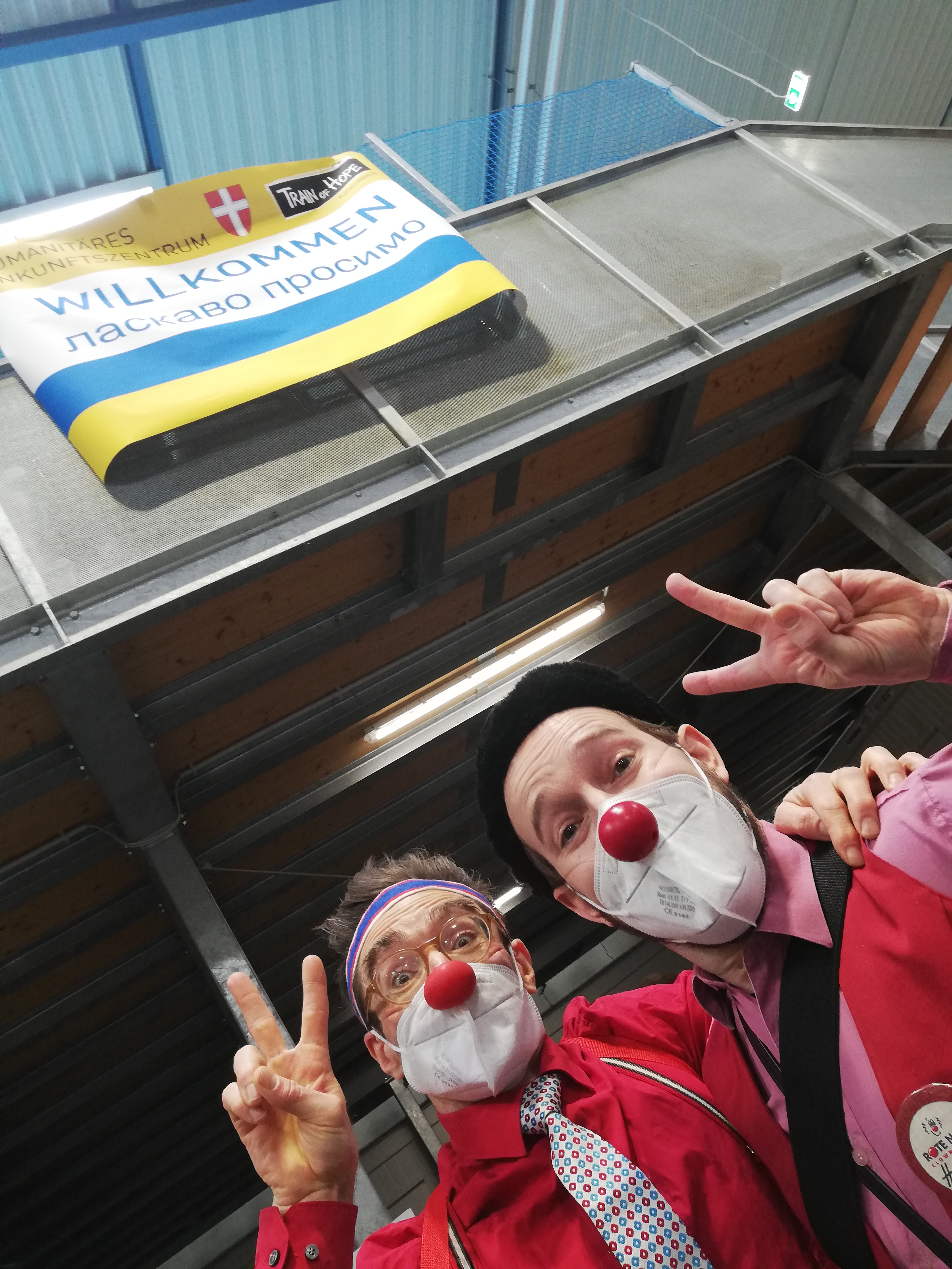 Mit „Emergency Smile“ hat ROTE NASEN ein eigenes Programm entwickelt, um die besondere Situation in der Arbeit mit Menschen zu berücksichtigen, die von Flucht und Kriegswirren belastet in einem für sie fremden Land Schutz gefunden haben oder auf Durchreise sind. So besuchen speziell ausgebildete ROTE NASEN Clowns unter diesem Titel unter anderem seit vielen Jahren geflüchtete Menschen aus Syrien. Auf diese langjährige Erfahrung können sie nun aufbauen: Seit Anfang März begaben sie sich bereits mehr als 70-mal in Ankunftszentren und Unterkünfte, um mittlerweile mehr als 5.500 Kinder und Erwachsene auf der Flucht aus der Ukraine Momente der Zuversicht zu schenken. Sie sind regelmäßig in Wien, der Steiermark, Tirol, Kärnten und Salzburg auf ihrer besonderen Mission unterwegs. So leisten sie auch am 20. Juni, den die UNHCR zum Weltflüchtlingstag erklärt hat, Erste Hilfe für die Seele. Mit ROTE NASEN International besuchten bzw. besuchen österreichische Clowns Flüchtlingscamps unter anderem in Griechenland, im Südsudan und in Jordanien. Den allerersten Einsatz bei geflüchteten Menschen machten ROTE NASEN Clowns 1999 im Kosovo.