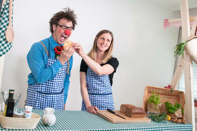 Unter dem Titel „Die kleine Kochshow“ zeigen Ernährungspädagogin Simone Sommerauer und ROTE NASEN Clowndoctor Bonifazius ganz ohne Verbote oder Langeweile wie gesunde Ernährung aussehen kann.