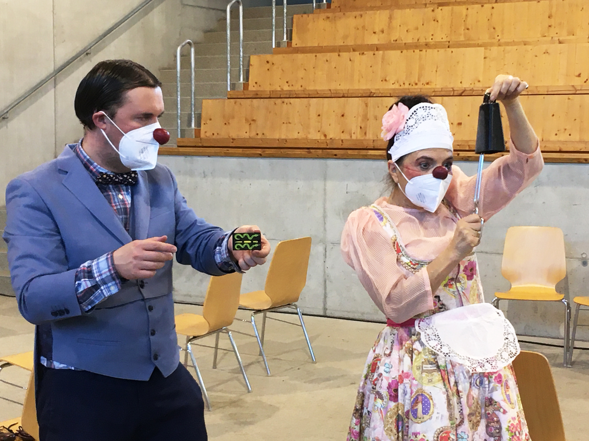 Vergangenen Donnerstag machten Lotte und Gerd die Impfstraße zur Bühne. „Operationsassistentin“ Lotte stand gerne bei den Impfungen bei, brauchte allerdings immer mehr Versorgung als die Impflinge. Gerd zauberte und verzauberte währenddessen im Wartebereich. Allerdings nur bis Lotte auftauchte, dann konnte er sich nicht mehr konzentrieren und alles ging schief - sehr zur Freude des Publikums.