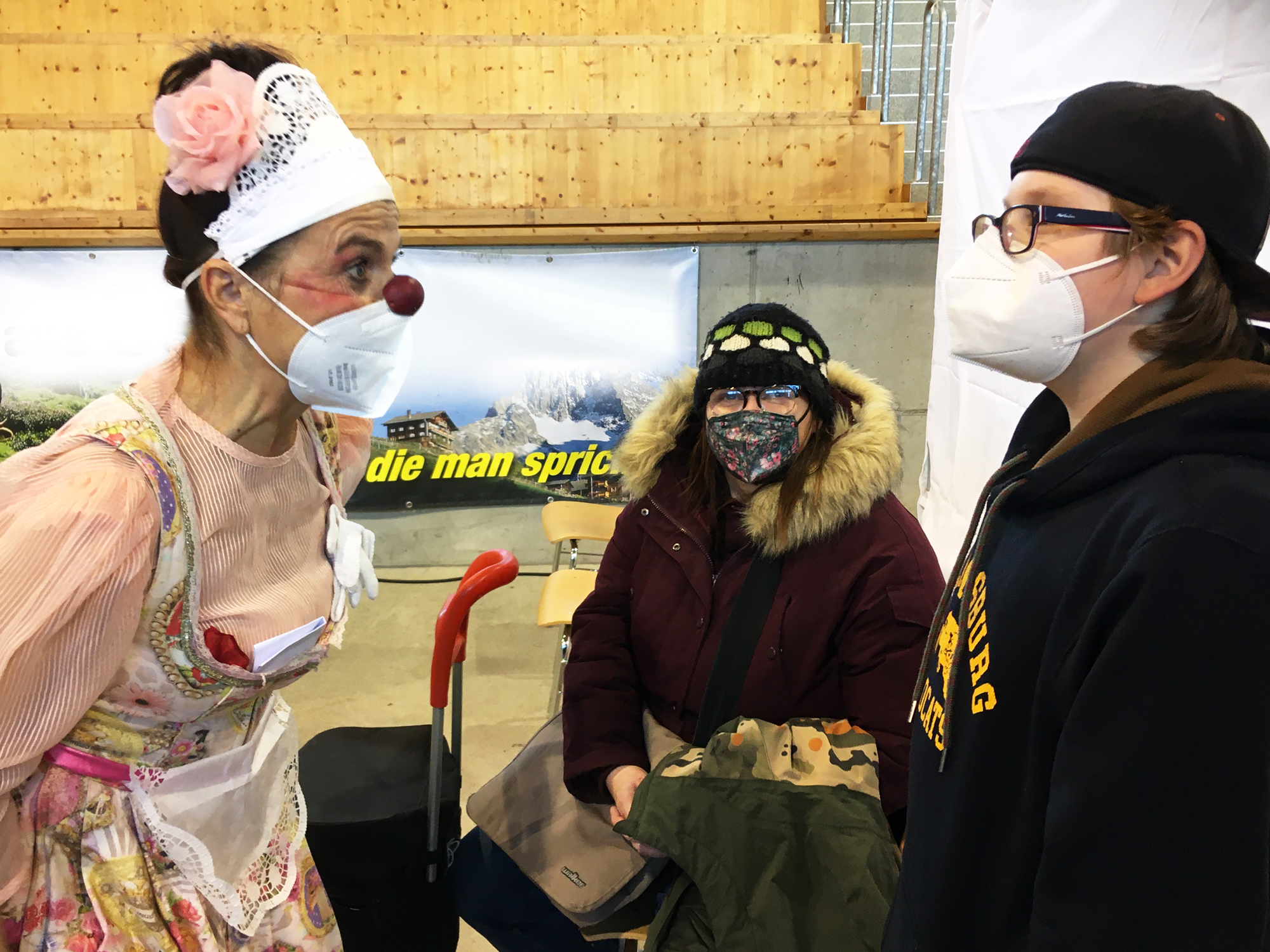 ROTE NASEN Clowns haben es sich zur Aufgabe gemacht, dorthin zu kommen, wo sie am dringendsten gebraucht werden. Neben ihren gewohnten Besuchen in Spitälern und medizinischen Institutionen, bedeutet das auch auf aktuelle Bedürfnisse einzugehen. Deshalb begleiten die Humorexpert*innen derzeit Kinder und ihre Angehörigen zur Covid-Impfung in Lienz.